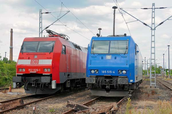 Im Bw Berlin-Lichtenberg standen gemeinsam die DB-Schenkerlok 152 026 (Siemens 91928/1998) und die DB-Leihlok von Alpha Trains 185 515 (Bombardier 33523/2002) und warteten auf ihren nächsten Planeinsatz