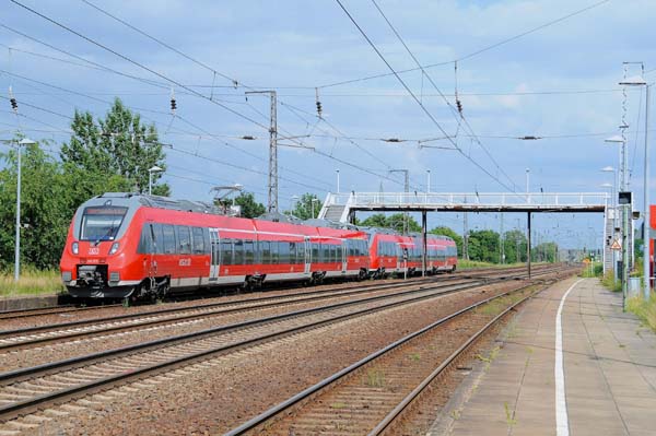Auf der RB22-Linie (Potsdam Griebnitzsee-Flughafen Schönefeld) wird die neue DB-Regio-Generation die Talent 2 von Bombardier eingesetzt, obwohl aus bekanntlichen Gründen der neue Berlin-Brandenburger-Airport (BER) nicht in Betrieb ging. Die beiden Bombardier-Einheiten ET44, die 442 629 und 442 630 fuhren mit dem RB22 in Saarmund ein
