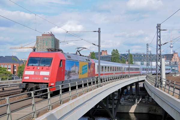 Der EC 248 (Krakow Glowny-Hamburg Altona) wurde von der 101 001 (Adtranz 33111/1996) mit der Werbung für Klagenfurt in Cottbus übernommen und fuhr am späten Nachmittag im Berliner Hauptbahnhof ein