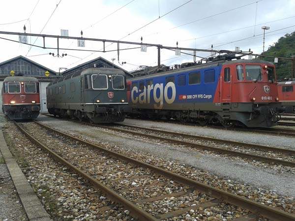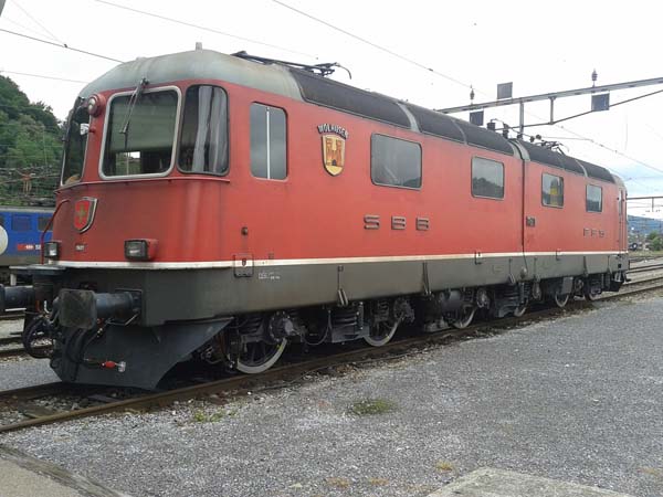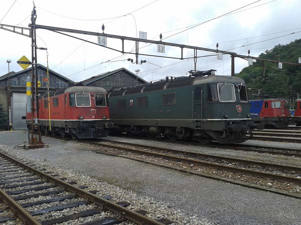 Re 6/6 11601 "Wolhusen", die am 31. Aug 2012 aus der Rev 1 in Bellinzona gekommen ist. Bei dieser Lok handelt es sich um die Prototypenausführung in Gelenkbauform, die aber nicht in Serie ging.