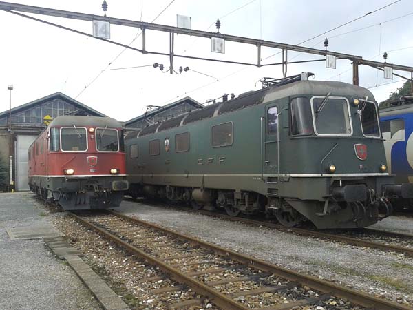Re 6/6 11601 "Wolhusen" neben Re 6/6 11646 "Bussigny" in ihrem alten SBB Grün und mit runden Loklichtern.