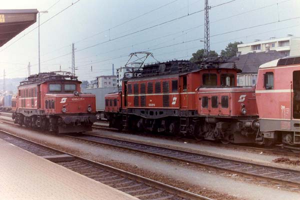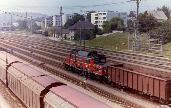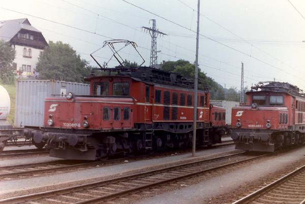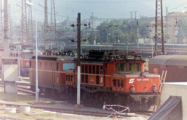 Und ich wieder zurück zu meinem Zelt. Nun muss man wissen, dass Arnoldstein recht heftigen Güterverkehr aufwies, verläuft hier doch die Bahnlinie nach Tarvisio in Italien. Tarvisio liegt kurz hinter der Grenze, dort wird umgespannt, und bis dahin übernimmt die ÖBB die Traktion. Am 10. August habe ich mich nochmals nach Arnoldstein aufgemacht. Auf den Gütergleisen herrschte ein kleines Krokodiltreffen, 1020.025 ruhte sich aus, während 1020.017 auf die nächste Leistung vorbereitet wurde.