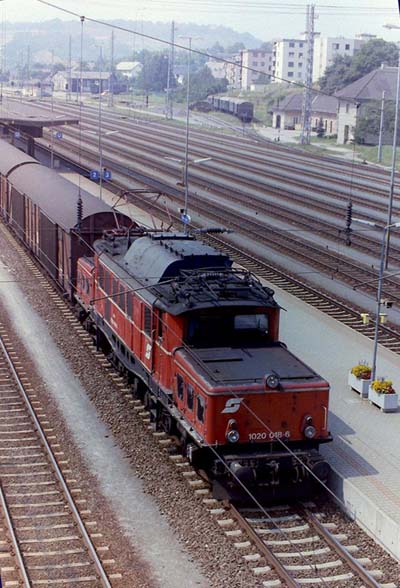![]() ... dann rollte 1020.026 mit einem Güterzug in den Bahnhof.