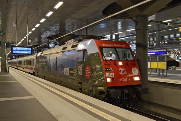 Die 101 118 war abends am CNL 1258 nach Zürich bzw. IC 61258 nach Erfurt zu sehen.