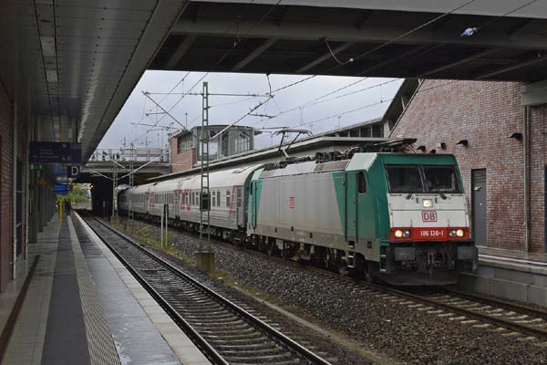 In Berlin war am 06.10.2012 baubedingt mal wieder "Umleitertag", die Züge des Berlin-Warszawa-Express und Berlin-Gdynia-Express fuhren via Tunnelbahnhof, Gesundbrunnen und Berlin Lichtenberg statt über die Stadtbahn. Auch die ICs von und nach Holland fuhren Berlin Hbf Tief an. Der "Russenzug" mit 186 130 wurde ohne Halt im Hauptbahnhof über Berlin Gesundbrunnen und Lichtenberg umgeleitet.