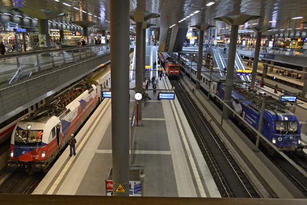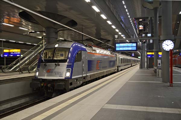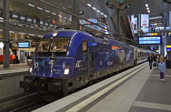 Sie bespannte am 6.10. den EC 44 und fuhr anschließend mit dem Leerpark in die Abstellung. Durch Unwetterschäden und der folgenden Einstellung des Zugbetriebs musste der Zug längere Zeit im Tiefbahnhof verharren, so dass eine Vielzahl von Bildsequenzen möglich war.