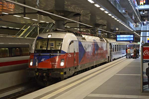 Die Tschechien-Werbelok 537 0006 war dagegen die Zuglok des EC-Paares 54/55 Berlin-Gdynia.