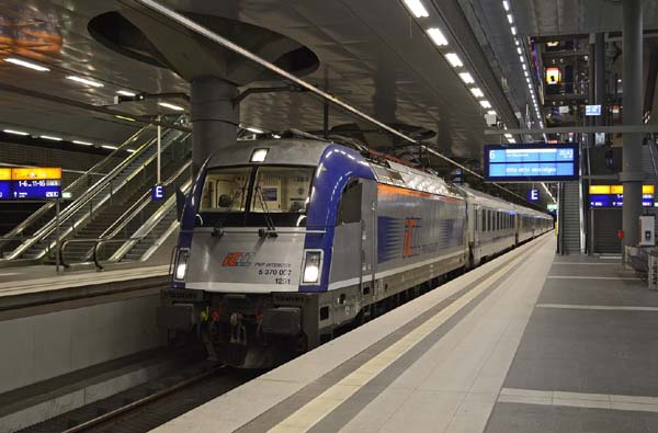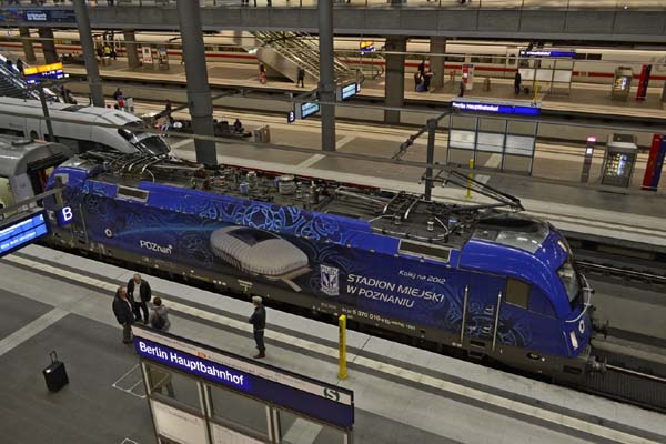 Leider wurde die 537 0007, ehemals hellblaue Werbelok für das Nationalstadion Warschau, nun endgültig entklebt. Die Lok kam in ihrer usprünglichen Farbtracht mit dem verspäteten EC 42 in der Nacht im Berliner Hbf an.