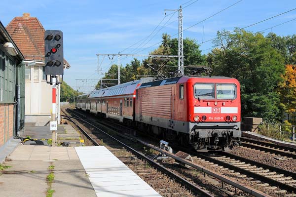 Die letztgebaute der ehemaligen DR der Baureihe 212.0 wird bei der Deutschen Bahn als Baureihe 114 geführt. Die DB Regio-Lok 114 040 fuhr im Norden von Berlin mit dem RE3 in Richtung Nordkreuz
