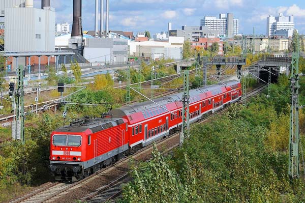 Über den Berliner Innenring fuhr am Nachmittag die DB Regio-Lok 143 821 mit dem RB10 (Berlin-Nauen) nach Jungfernheide und dann weiter in Richtung Spandau