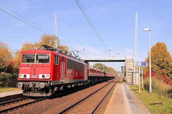 Die DB Schenker-Lok 155 006 kam mit dem Grundstoffzug (Sand) durch das brandenburgische Örtchen Marquardt und wird bald das Eisenbahnkreuz Werder erreichen
