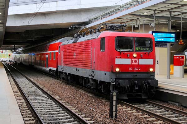 Durch die Baumaßnahme Berlin-Rostock wurde die RE5-Verbindung geteilt. Am frühen Morgen erreichte die DB Regio-Lok 112 184 den Bahnhof Südkreuz und wird nach einem kurzen Stopp nach Hauptbahnhof unterwegs sein