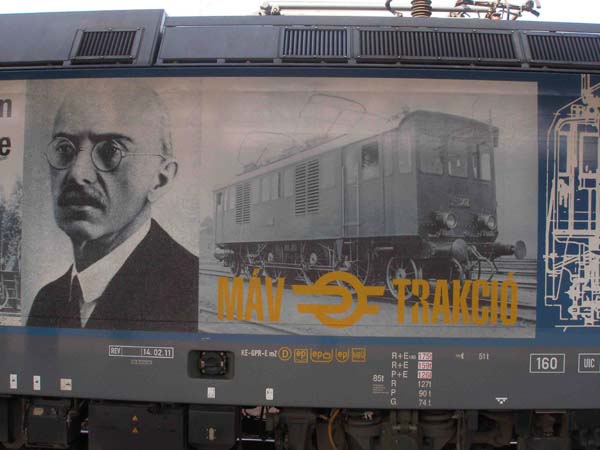 MAV 480 001 „100 Jahre Kandö“ im Bahnhof Keleti –Detail: Kandös italienische Drehstromlokomotiven.