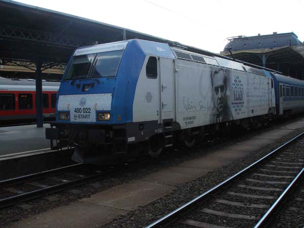 MAV 480 022 „100 Jahre Weöres Sandor“ im Bahnhof Keleti (Jugendseite).