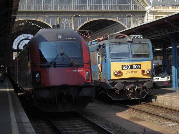 ÖBB Railjet und MAVTR 630 009 treffen sich im Bahnhof Keleti.
