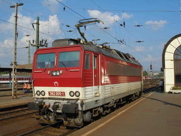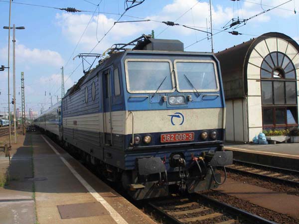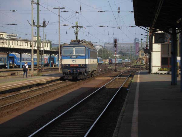 ZSSK 362 009-3 fährt mit ihrem Zug und reichlicher Verspätung (ca. +100) in den Bahnhof Keleti ein.