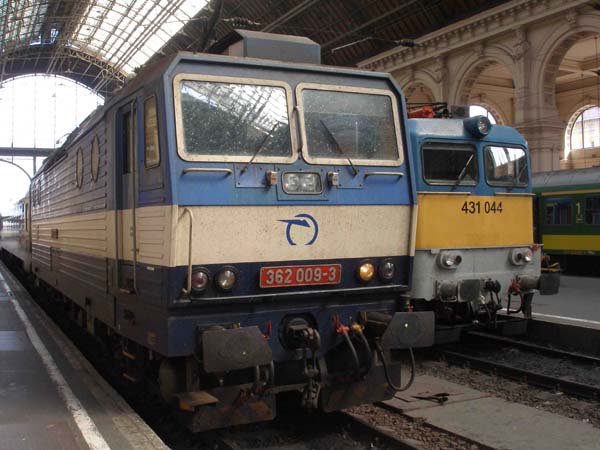 ZSSK 362 009-3 steht neben MAV 431 044 in der Bahnhofshalle Bahnhof Keleti.