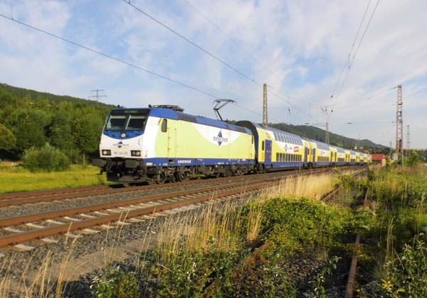 ME 146 509 ist als Erste dran: sie zieht einen RE2 nach Göttingen.
