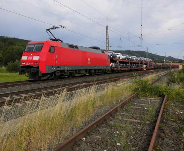 Und dann waren die zwei Stunden fast um: 152 103 mit zwei Autowagen und dahinter etlichen Wagen Drahtrollen sollte es für heute gewesen sein.