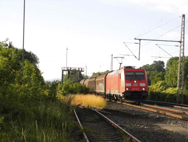 Dann kommt 185 315 mit einem Gemischtwarenladen aus Süden heran.