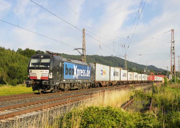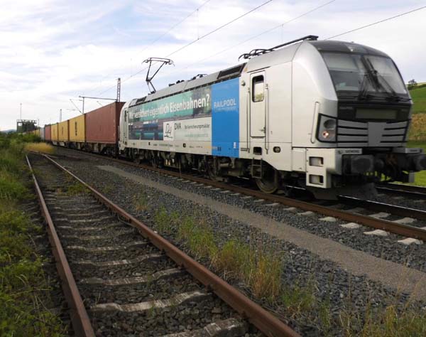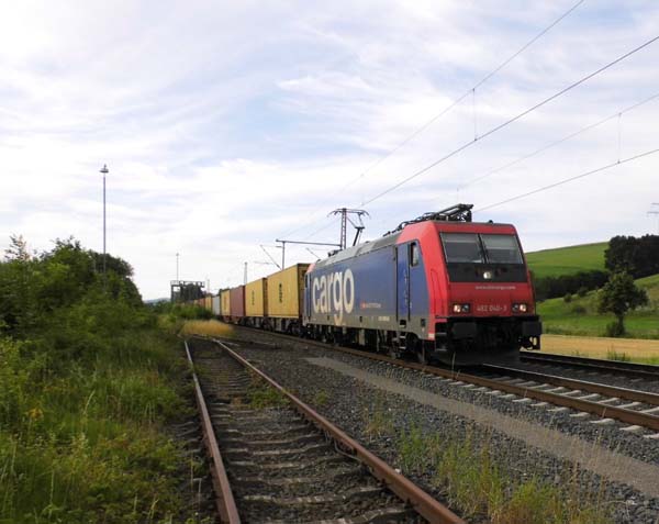 Dem RE2 in Richtung Süden folgt 193 851 mit einer Ladung Container.