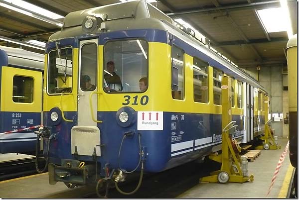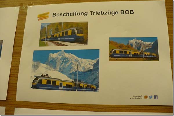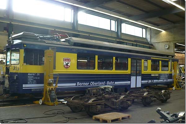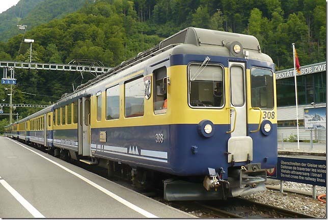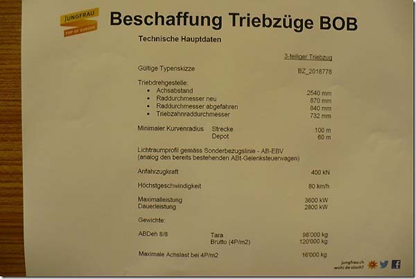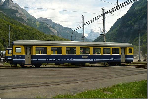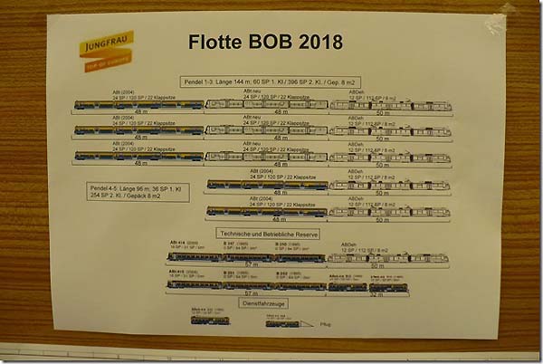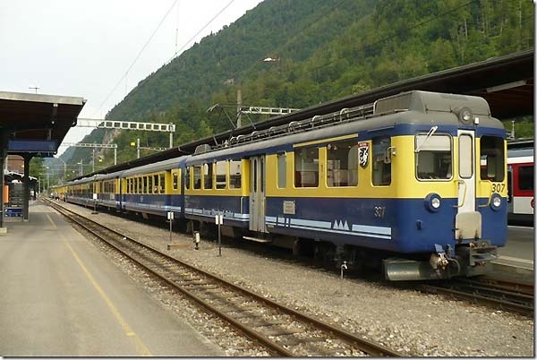 Geschichte Am 1. Juli 1890 wurde die Bahnstrecke von Interlaken Ost nach Grindelwald sowie Lauterbrunnen feierlich eröffnet und am 17. März 1914 elektrifiziert. Man wählte beim Bau die Spurweite 1000mm wie die Brünigbahn. So konnten - Dank einer Gleisverbindung im Bhf Interlaken Ost - durchgehende Wagenläufe von Luzern her ermöglicht werden. Fahrzeuge von Beginn bis Heute Die BOB setzte während der Dampfzeit, Dampfloks vom Typ HG 3/3 1-6 Baujahr 1890/1893 ein, und beschaffte von 1906-1910 drei baugliche Loks mit den Nummern 7-10, um so die steigende Passagier- und Güterverkehrslast zu bewältigen. Nach der Elektrifizierung, wurden die Dampfloks nach Italien verkauft und dort auf 950mm Spurweite umgebaut. 1914 wurden die Loks HGe 3/3 21-28 bei SLM-BBC-MFO gekauft und für den Gesamtverkehr eingesetzt. 1926 wurde noch eine weitere Lok beschafft nämlich HGe 3/3 29. Im Jahre 1949 hat die Berner Oberland Bahn drei Triebwagen ABDeh 4/4 301-303 gekauft und 1965 dann ABeh 4/4 I 304-308 nachgträglich beschafft. Mit diesen Fahrzeugen konnten so die betagten Loks HGe 3/3 abgelöst werden. Weil jedoch stettig immer wie mehr Passagiere kamen und auch der Güterverkehr zunahm, mussten 1979 weitere 2 Triebwagen beschafft werden - die ABeh 4/4 I 309+310. 1986 hat die BOB sich dann drei Neubautriebwagen ABeh 4/4 II 311-313 gekauft und im gegenzug den ABeh 4/4 I 309 an die Bayerrische Zugspitzbahn verkauft. Bei den Passagierwagen standen zuerst kleinere 2-und 3 achsige Plattformwagen zur Verfügung, die jedoch bald durch längere 4achsige Plattformwagen abgelöst wurden. Als die Brünigbahn den Personenwagen EW III Typ Brünig kaufte, schloss sich die BOB an und beschaffte sie auch. Einsatz Heute Die lokbespannten Züge brachten leider immer viel Rangieraufwand, weil man die Triebfahrzeuge umsetzen musste. Aus diesem Grund entschied die BOB, diesem Problem ein Ende zu machen. Sie begann die alten Plattformwagen auszurangieren und die Einheitspersonenwagen EW III Typ Brünig sowie Triebwagen für den Pendelzugbetrieb umzubauen. 1986 wurden Neubauwagen Typ Vevey beschafft inklsuive passender Steuerwagen BDt 401-403. Vom Regionalverkehr Bern-Solothurn konnte man Occasionssteuerwagen ABt 411-415 kaufen und so weitere Pendelzüge bilden. 2004 wurden bei Stadlerrail dreiteilige Niederflursteuerwagen ABt 421-425 beschafft, um so genügend Pendelzugkapazität bereitzustellen. Leitstelle / Hauptwerkstatt Die gesammte Berner Oberland Bahn BOB Interlaken-Ost-Lauterbrunnen/Grindelwald wird seit einigen Jahren von der Zentralen Leitstelle in Zweilütschinen ferngesteuert. Für die Wartung des gesammten BOB Fahrzeugmaterial ist in Zweilütschinen auch die Hauptwerkstatt angesiedelt, in der auch Lehrlinge ausbildet werden. Zukunft Bis ins Jahre 2018 wird die Berner Oberland Bahn, beim Rollmaterial grosse Veränderungen vornehmen. Durch die Beschaffung von neuen dreiteiligen Triebwagen ABDeh 8/8 und weiteren Niederflursteuerwagen, soll dann viel Altrollmaterial ausrangiert werden. Technische Daten zur Berner Oberland Bahn BOB Betriebseröffnung Dampf: 1.Juli 1890 Elektrifizierung: 17. März 1914 Streckenlänge: 23,69 Km Spurweite: 1000mm Maximale Neigung Adhäsion: 25 Promille Maximale Neigung Zahnstange: 120 Promille Zahngstangensystem: Riggenbach/VonRoll Fahrdrahtspannung: 1500 Volt Gleichstrom Heizspannung: 1500 Volt Gleichstrom Zugsicherungsystem: ZSi 127 Siemens Bremssystem: Druckluft 4 Bar Hauptwerkstatt / Zentrale Leitstelle: Zweilütschinen 1. Lackierung der Fahrzeuge: Dunkelbraun/Creme 2. Lackierung der Fahrzeuge: Dunkelbraun-Zierstreiffen/Creme 3. Lackierung der Fahrzeuge: Gelb/Hellblau/Dunkelblau "Tag der offenen Tür" in Zweilütschinen Am 29. Juni 2015 konnte die schmalspurige Berner Oberland Bahn BOB ihren 125. Geburtstag feiern und führte dabei ein "Tag der offenen Tür" in Zweilütschinen (Werkstätte und Leitstelle) durch. Zudem verkehrte an diesem Tag ein Dampfzug der Ballenberg Dampfbahn BDB auf dem Streckennetz Zweilütschinen - Interlaken Ost - Zweilütschinen zur Freude der Geburtstagsgäste hin und her.