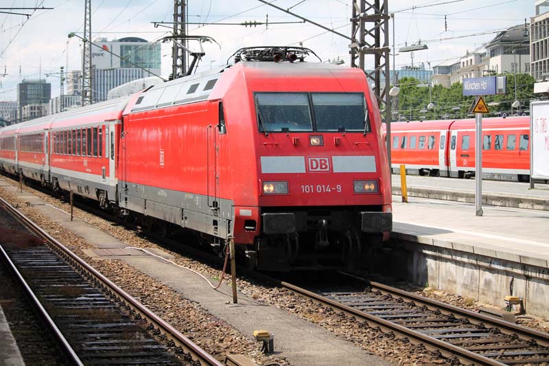 Hier bringt 101 014-9 von DB Fernverkehr einen Regionalexpress in den Münchner Hbf rein.