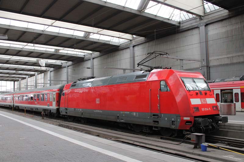 Hier hat die Fernverkehrslok der Baureihe 101 014-9 ihren Regionalexpress nach München gebracht und wartet auf die Rückfahrt.