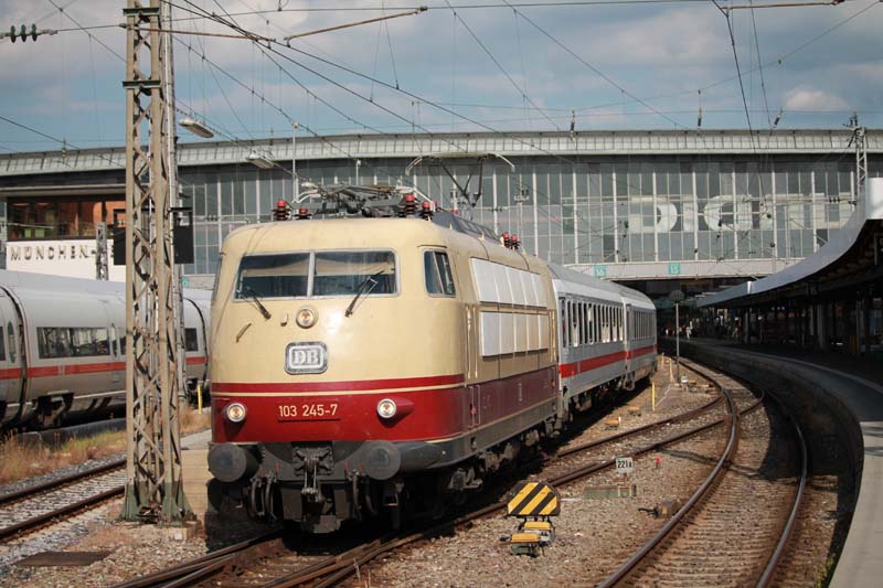 Angekoppelt und Aufgebügelt wartet die 103 245 nun im Münchner Hbf auf die Ausfahrt mit ihrem IC 2094 nach Ulm Hbf.