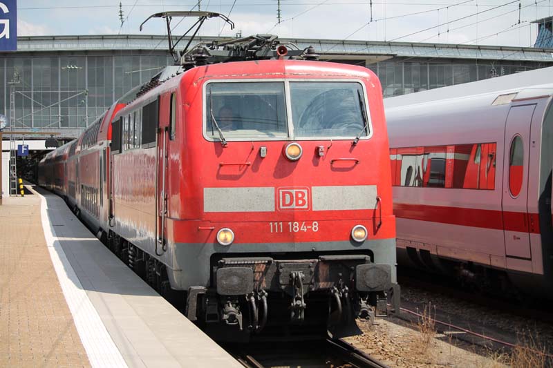 111 184-8 hatte gerade ausfahrt erhalten und macht sich auf den Weg nach Nürnberg.