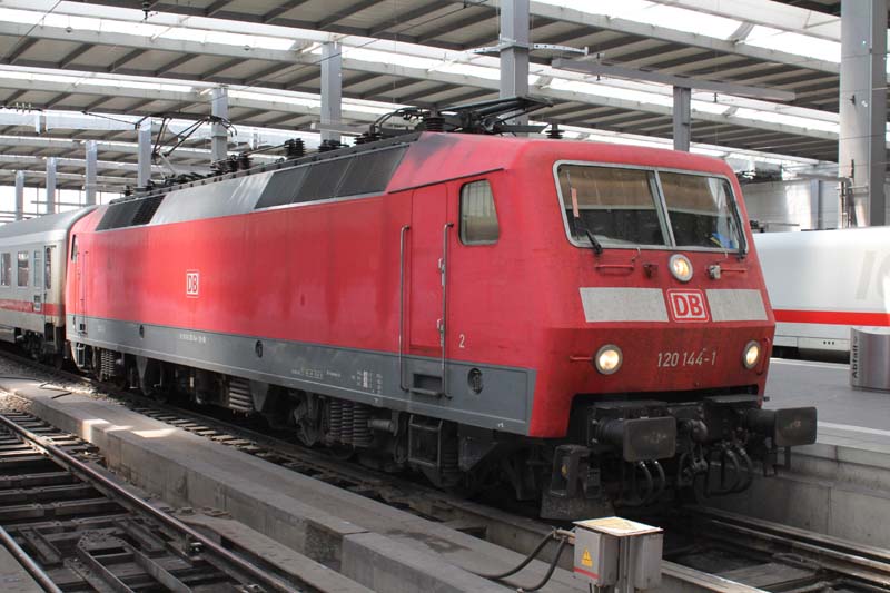 Gerade ist gerade die Münchner Fernverkehrslok 120 144-1 mit einem IC in den Münchner Hbf eingefahren. Sie wird in Kürze die Rückfahrt antreten. Leider sinkt der Bestand auch schon bei diesen Drehstromlokomotiven der Baureihe 120.