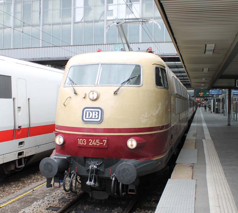![]() Am 06. August.2008 konnte ich die damalige 110 347-2 an einem Heißen Nachmittag in Garmisch-Partenkirchen ablichten wie sie sich für den nächsten Dienst ausruhte. ![]() Die München beheimatet Vorserien 111 002-2 fährt mit ihrer Regionalbahn in den Bahnhof von Garmisch-Partenkirchen ein und wartet auf die Zugkreuzung der aus Mittenwald kommt ab. Nach dem die Zug Kreuzung erfolgte kann sie die Fahrt nach Mittenwald fortsetzten. ![]() Auf Grund des Jubiläums 850 Jahre München ließ der Disponent diese Werbe Lok 111 027-9 nach Garmisch-Partenkirchen fahren um dort sich bei Eisenbahnfans sich zu präsentieren. Am 05. August. 2008 brachte sie eine Planmäßige Regionalbahn nach Garmisch-Partenkirchen. ![]() Auch die Münchner 111 044-4 wird in Kürze die Rückfahrt nach Mittenwald antreten wenn die Lok unter 15 KV steht. ![]() Auch 110 223-5 war öfters mal in Garmisch-Partenkirchen zum Rangieren eingesetzt worden. Am 05. August.2008 stand sie auf Gleis 6 des Garmischer Bahnhof und wartet nun auf ihre Rangierleistung. ![]() Die am 21.11.1957 in Dienstgestellte 110 114-6 wurde dem Betriebshof Heidelberg zugeteilt dort erledigte sie ihre Dienste vor schnell Zügen die so eine Lok benötigten. Am 31.05.1970 wechselte sie dann ihre Heimat und gelangte zum Betriebshof Offenburg wo sie bis zum 28.09.1975 blieb. Am 28. September.1975 zeigte sie dem Frankfurter Personal war in ihr steckte. Zum 10. Juni.2001 trat sie in ihrem neuen Betriebshof München die Arbeit an und blieb bis zu ihrem Verkauf der am 01.12.2005 stattfand dort. Im Jahr 2013 musste sie auf Grund dem Bedarfs abgestellt werden doch einen Monat später am 20.Oktober.2013 kehrte sie wieder zurück in den aktiven Dienst zurück. Seit 2013 kann man sie im Münchner Raum vor PbZ oder vor Bereitstellungen antreffen. Am 16. Februar.2008 war sie in München mit einem Intercity zu Gast in der Landeshauptstadt. ![]() Die am 24. März.2008 eingesetzte Münchner 111 069-1 wird in Kürze die Fahrt nach Mittenwald antreten. Leider wechselte sie am 11.12.2009 ihren Betriebshof und kam nach Ludwigshafen. Von dort an kam die Lok nach Dortmund und beendete dort ihre Lok Kariere Am 22. April.2016 erfolgte ihre Abstellung beim Stillstandsmanagment in Hamm. Ob die Lok nochmals in den aktiven Dienst zurück kehrte kann bis heute noch keiner Sagen. ![]() Die in Dortmund beheimatete 110 497-5 reiste mit einem PbZ in die Landeshauptstadt München an um mal ins Werdenfelder Land zu kommen. Am 14. April.2009 stand sie fertig aufgerüstet auf Gleis 30 und wartet auf die Ausfahrt nach Garmisch-Partenkirchen. Leider musste sie ihren Dienst Quittieren und wurde am 31. Januar.2013 in Opladen zerlegt. ![]() Am 06. August.2008 stand die Münchner 110 347-2 einsatzbereit auf Gleis 6 des Garmischer Bahnhof. ![]() An einem kalten Januar Morgen stand 111 036-0 mit ihrer Regionalbahn nach Innsbruck Hbf im Starnberger Flügelbahnhof abfahrbereit auf Gleis 31. Am 04. Januar.2010 konnte man die Nürnberger 111 179-8 vor ihrer Regionalbahn nach Mittenwald in München antreffen. Sie wird um 13:32 den Hauptbahnhof verlassen. ![]() 115 293-3 brachte am 04. Juni.2010 einen Intercity in die Landeshauptstadt von München. diese Lok gehört auch wie jede andere 115er zu DB Autozug und man kann sie vor PbZ oder vor Bereitstellungen im Münchner Raum antreffen. ![]() Auf Grund eines defekten Steuerwagens der vermutlich in Mittenwald festgestellt wurde um fuhr die Münchner 111 036-0 am 16. August.2010 ihn und fuhr mit ihm in Richtung München Hbf. Hier bei der Einfahrt in den Garmischer Bahnhof. ![]() Da DB Fernverkehr große Probleme mit den neuen ICE3 hatte überlegte man ob nicht die zuverlässige Fernverkehrslok die 103 nicht zum Einsatz kommen sollte. Da man für 200 Km/h nicht so viel im Betriebshof von München hatte die die Lokomotiven verplant waren griff man kurzerhand zum edlen Renner der Baureihe 103 zurück. Am 14. April 2009 kam 103 245-7 mit ihren ICE Ersatz- Zug in die Landeshauptstadt von München auf einem kurzen Besuch in die Landeshauptstadt. ![]() Die Münchner Jubiläums Lok 111 027-9 hatte am 05. August.2009 die Regionalbahn nach Reutte in Tirol an Hacken und wird sich in kürze in Bewegung setzen. ![]() 111 025-3 konnte man am 16. August.2010 in Garmisch-Partenkirchen mit ihrer Regionalbahn nach München antreffen. Ein besonderes Merkmal hatte die Lok, sie hatte einen DSA 200 Stromabnehmer erhalten. ![]() Am 04. Januar.2010 konnte man die Münchner 110 322-5 mit einer Reserve Garnitur in München antreffen. ![]() Am 10. August 2008 hatte 110 322-5 Wochenendruhe im Bahnhof Garmisch-Partenkirchen und steht abgerüstet auf Gleis 5. ![]() Nicht alltäglich zu sehen aber trotzdem immer wieder schön. 1020.44 kam 12. August.2008 mit einem Sonderzug aus Innsbruck nach Garmisch-Partenkirchen und wird auch wieder in kürze nach Innsbruck zurück fahren. ![]() Mit einem Abstecher mach München hatte ich auch am 04.03.2013 zu tun. Da München nachhinein eine Hochburg der Baureihe 111er ist konnte man reichlich die Kamera mit ihnen füttern. Hier eine kleine Auswahl der Bild Sichtungen aus dem Jahr 2013. An einem kalten Vormittag Anfang März 2013 brachte die Nürnberger 111 186-3 ihre Regionalbahn aus Innsbruck nach München Hbf und wartet auf die Rückfahrt. ![]() Mit beiden Scherenstromabnehmer am Fahrdraht wärmte sich die Münchner 111 043-6 am 04. März.2013 auf ihrem Wartegleis. ![]() Die Nürnberger 111 217-6 wurde am 04.03.2013 von einem Kollegen aufgerüstet und wird in Kürze aus der Abstellung fahren und die Leistung nach Treuchtlingen übernehmen. Ein Gleis weiter stand ebenfalls eine Münchner Maschine 111 174-9 aufgebügelt und wartet auf neue Arbeit. ![]() Auch 111 037-8 vom Betriebshof München stand mit beiden Scherenstromabnehmer am Fahrdraht. Sie wird in Kürze die Regionalbahn nach Kufstein bespannen. ![]() Unser Maxl war damals das Sprichwort unter Lokführer Kollegen und Eisenbahnfans wie sie noch so beklebt war. Hier steht nun die Münchne