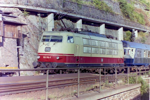Kleines Rätselraten am Rhein: an einem schönen Sommerabend, genauer am 3. August 1986, fährt 103 170 in St. Goarshausen ein.Vor einem Silberling-Steuerwagen mit ozeanblau/beige-farbener Stirn. Sachen gibt’s...
