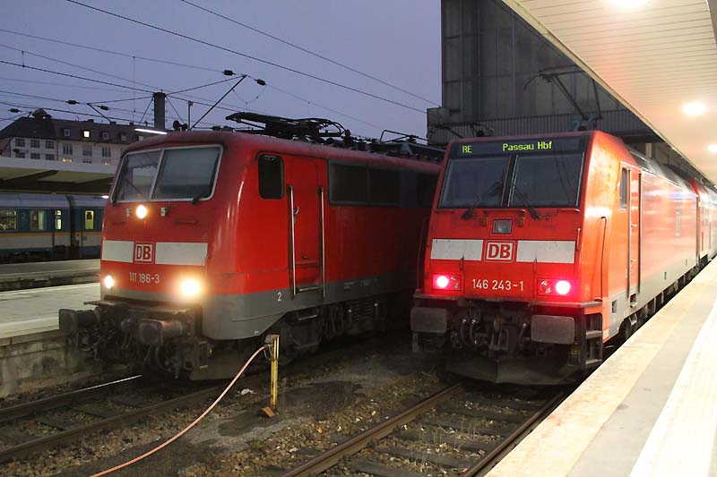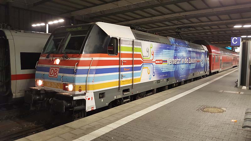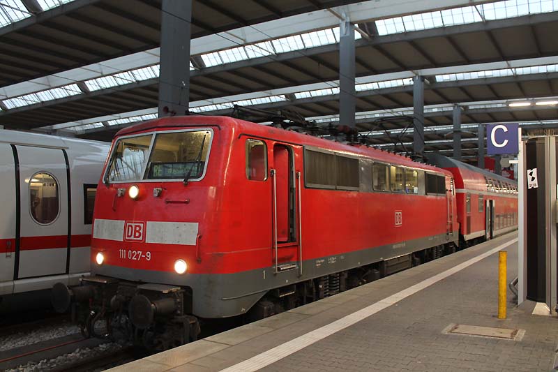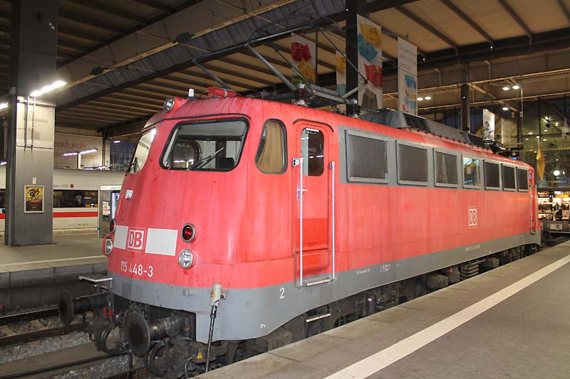 Der Münchner Hauptbahnhof zählt zum Zentralen Umsteige Bahnhof der Deutschen Bahn. Mit täglich 450.000 Reisenden ist er zusammen mit dem Frankfurter Hauptbahnhof nach dem Hamburger Hauptbahnhof der am zweitstärksten frequentierte Fernbehnhof der Deutschen Bahn . Der erste Münchner Bahnhof entstand 1839 westlich des heutigen Bahnhofes, 1848 gingen an heutiger Stelle die ersten provisorischen Teile in Betrieb. Danach folgten mehrere Umbauten und Erweiterungen, da der Bahnhof im Laufe seines Bestehens eine immer größere Bedeutung im bayerischen Eisenbahnnetz bekam. Er umfasst außerdem zwei gleichnamige U-Bahnhöfen der MVG und ist Station für die S-Bahn, die beide im Münchner Verkehrs und Tarifbund angehören. Zu jedem größeren Bahnhof gehört auch ein Bahnbetriebswerk. Zum Zeitpunkt der elektrischen Betriebsaufnahme 1925 waren schon damals runde 50 Elektrolokomotiven der Baureihen E 32,E52 und E 77 im Bw München beheimatet. Auch die Schnellzuglokomotiven der Baureihe E 17/E18 und die E 04 mit ihrem Federtopfantrieb wurden ab 1934 in der Landeshauptstadt stationiert. In den siebziger Jahren waren nun auch die Einheitslokomotiven der Baureihe 110 in München und die Nachfolger Baureihe 111 beheimatet. Die Lokomotiven der Baureihe 141 kamen aber erst im Jahr 1982 nach München. Nun waren fast alle Ellok Generationen in München. Ab 1992 waren nun alle elf Lokomotiven der Baureihe 113 in München beheimatet und leisteten vor Regionalzüge ihre Arbeit. Von 1991 bis 1995 wurden schrittweise alle 48 Lokomotiven der Baureihe 139 im Bw München Hbf zusammengezogen, 2002 wurden sie wieder vollständig zum Bw Nürnberg West abgegeben. Ab 1998 stationierte die Deutsche Bahn die Drehstrom-Lokomotiven der Baureihe 120 in München. Bis 1999 löste sie den Münchener Bestand an Elloks der Baureihe 140 auf. Ab 2001 kamen erneut Einheitselloks der Baureihe 110 zum Betriebswerk, die sich nun im Einsatzbestand von DB Regio befanden. Ab 2003 wurden mit 103 235 von DB Systemtechnik und 103 245-7 von DB Fernverkehr erneut zwei Lokomotiven der Baureihe 103 in München beheimatet. 2007 gab das Münchener Betriebswerk die letzte Lok der Baureihe 113 ab und 2011 wurden die noch in München beheimateten Lokomotiven der Baureihe 110 ausgemustert. Heute sind neben 103 245-7 die Ellok-Baureihen 111 und 120 im Betriebshof München West stationiert. ![]() Am Tag des Heiligen Martin bespannte 101 112-1 einen Regionalexpress nach Nürnberg und wartet nun auf die Ausfahrt. ![]() Am Montag des 12.11.2018 in der Früh brachte die Nürnberger 146 247-2 eine Regionalbahn von Landshut Hbf nach München Hbf und wird in wenigen Minuten in die Abstellung fahren. ![]() Als Taktverstärker für die Berufspendler hatte am 12.11.21018 der Et 420 948-2 mit ihrer S 4 Einfahrt in den Starnberger Bahnhof ![]() Die Münchner 111 027-9 bespannte am 12.11.2018 einen Regionalexpress nach Ingolstadt Hbf und wartet nun auf die Rückfahrt nach München. ![]() Wenn mal der Steuerwagen nicht mag wie der Lokführer es sich vorgestellt hatte wird eben eine zweite Nahverkehrs Lok der Baureihe 111 als Vorspann gefahren. 111 201-1 und 111 184-8 ![]() Am 12.11.2018 bespannte die Münchner 111 022-0 einen Regionalexpress nach Donauwörth und wartet nun im Hauptbahnhof von München auf die Ausfahrt. ![]() Der Betriebshof München schickte am 12.11.2018 ihre 111 017-0 mit der Regionalbahn 59104 nach Nürnberg Hbf. ![]() Der Betriebshof Nürnberg kann auch seine Nahverkehrslokomotiven noch nicht ganz verzichten und schickte ihre 111 186-3 mit einem Doppelstock nach München Hbf. Auf Gleis 26 wartet sie nun auch die Rückfahrt nach Regenburg. ![]() 111 027-9 wartet am 12.11.2018 mit einer Regionalbahn nach Gesserthausen im Münchner Hbf auf die Ausfahrt. ![]() Auch die Münchner 111 039-4 bespannte am Abend des 12.11.2018 weine Regionalbahn nach München und wird um 17:34 nach Pfaffenhofen die Landeshauptstadt verlassen. ![]() Am Dienstagmorgen des 13.11.2018 bespannte die Nürnberger 111 207-7 einen Regionalexpress und brachte ihn nach München Hbf. ![]() Auch die 111 017-0 konnte man am Abend des 13.11.2018 in München beobachten wie sie ihren RE 4890 nach Ingolstadt Hbf bespannte. ![]() Am Abend des 13.11.2018 stellte die 115 448-3 den IC 2094 für die 120 133-4 nach Ulm auf Gleis 17 bereit. ![]() Am Abend des 13.11.2018 bespannte die Nürnberger 146 245 -6 ihren RE 4082 nach Passau Hbf ![]() Nach dem der IC 20894 mit 120 133-4 die Landeshauptstadt verlassen hatte rollte auch 115 448-3 aus der Haupthalle raus und in den Feierabend hinein. ![]() Auch die blauen VT 628 der Südostbayernbahn kommen mehrmals am Tag nach München. Am 14.11.2018 wartete 628 423-3 auf einem Abstellgleis auf den nächsten Einsatz. ![]() Auf einem Stumpfgleis des Münchner Hbf wartet 101 014-9 auf den nächsten Einsatz. ![]() Was für ne Überraschung. Am 14.11.2018 konnte man die RailAdventure 111 210-0 an der Donnersberger- Brücke antreffen als sie gerade eine kleine Pause einlegte. ![]() Am 14.11.2018 war der Mühldorfer 628 423-6 auf einem Abstellgleis abgestellt und wartet nun dort auf die nächste Leistung. ![]() Münchner 111 022-0 brachte ihren Regionalexpress 59185 aus Pfaffenhofen nach München und wird um 16:16 mit 57070 nach Augsburg aufbrechen. ![]() Am 14.11.2018 schickte das Werk München ihre 111 017-0 nach Nürnberg. Nach Ankunft in Franken nahm die Münchnerin wieder die Rückreise auf und hatte Einfahrt in den Münchner Hbf. Um 17:24 wird die Münchner das letzte mal für diesen Tag nach Nürnberg fahren ![]() 115 198-4 hatte am 14.11.2018 Dienst und stellte für die Münchner 120 159-9 den IC 2094 nach Ulm bereit. ![]() 111 186-4 wartet neben der Nürnberger 146 243-1 auf die Rückfahrt nach Regensburg. Denn auf Gleis 25 bespannte am selben Abend die Nürnberger 146 243-1 den RE 4082 nach Passau Hbf. ![]() Die Nürnberger 146 247-2 bespannte am 15.11. 2018 einen planmäßigen Regionalexpress und brachte ihn nach München. Nun wartet 146 247-2 auf di