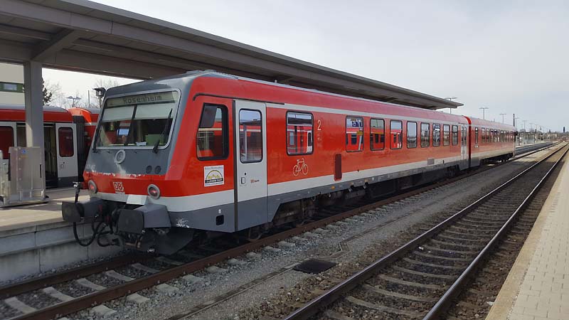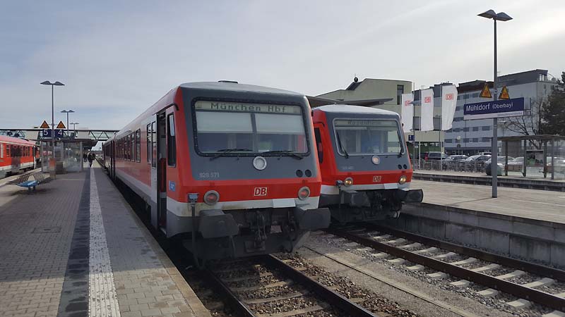 ![]() Am 02.03.2020 wartet VT 628 483-9 auf die Rückfahrt nach Rosenheim in Mühldorf. ![]() VT 628 483-9 / 928 483-6 und 628 571-1 / 928 571-8 warten am 02.03.2020 auf die Rückfahrt nach Rosenheim und nach München Hbf. ![]() Am 02.03.2020 hatte ET 403 058-1 Einfahrt In den Münchner Hauptbahnhof. ![]() Am Montag des 02.März.2020 wartet die Nürnberger 146 245-6 mit ihren RE nach Nürnberg. Dies war einst die Werbe Lok 100 Jahre Freistaat Bayern die nun in verkehrsrot ihren Dienst erledigt. ![]() Auf Gleis 26 wartet am 02.03.2020 die 101 133-7 mit ihrem München-Nürnberg Express auf die Rückfahrt nach Nürnberg Hbf. ![]() Am 02.03.2020 warten gleich zwei Mühldorfer 628er auf die Rückfahrt nach Mühldorf. ![]() Nach dem die Münchner 111er ihre Stammstrecke sich zurückgeholt haben sind mehrmals am Tag die Baureihe 111 zwischen Passau und München unterwegs. Am 02.03.2020 bespannte 111 035-2 zusammen mit 111 201-0 den RE 4074 nach Passau Hbf. ![]() Mit beiden Einholmstromabnehmer am Fahrdraht wartet 183 004 auf eine Rangierfahrt. ![]() Auch auf der Werdenfelsbahn nach Garmisch-Partenkirchen werden 111er eingesetzt. Am 02.03.2020 bespannten 111 022-0 und 111 027-9 ihre Regionalbahn 59458 und hatten um 13:26 Einfahrt in den Münchner Hbf. ![]() Nach Ankunft der Regionalbahn 59458 im Starnberger Flügelbahnhof wartet nun 111 027-9 auf die Rückfahrt nach Garmisch-Partenkirchen. ![]() Am 02.03.2020 wartet 111 027-9 zusammen mit 111 022-0 die als Schlusslok dient auf die Rückfahrt nach Garmisch-Partenkirchen. ![]() Auf Gleis 26 wartet 111 017-0 mit ihrer Regioanlbahn 59078 auf die Rückfahrt nach Ingolstadt Hbf. ![]() Nach dem 111 017-0 den Münchner Hbf verlassen hatte konnte der ALX 79861 nach Regensburg für die Fahrgäste auf Gleis 26 bereitgestellt werden. ![]() Auch die Regionalzüge nach Landshut Hbf werden seit dem Fahrplanwechsel mit zwei 111er bespannt. Am Montag des 02. März.2020 hatte 111 188-9 vom Betriebshof München und 111 227-5 die Regionalbahn 59256 nach Landshut Hbf bespannt und wartet nun auf die Ausfahrt. ![]() 111 227-5 war die letzte gebaute Serien Lokomotive was die Deutsche Bahn erhalten hatte. Sie wurde am 10.10.1984 abgenommen und dem Betriebshof München übergeben. Die Lok wechselte am 25.09.1999 den Betriebshof und wurde nach Nürnberg abgegeben. Seit dem steht die Maschine voll im Einsatz bei DB Regio und kann im aktiven Dienst vor diversen Regionalzügen beobachtet werden. ![]() Am 02.03.2020 hatte 111 188-9 Dienst und stellte ihre Regionalbahn 59269 für die Fahrgäste auf Gleis 24 zum Einsteigen bereit. ![]() Mit einer Überraschung konnte man am 02.03.2020 die Märklin Werbe Lok 101 064-4 im Bahnhof von München - Pasing antreffen als sie einen IC nach München Hbf bespannte. ![]() Am 02.03.2020 verlässt 101 064-4 den Bahnhof von München-Pasing und wird nach wenigen Minuten den Münchner Hbf erreichen. ![]() Am frühen Nachmittag des 02.03.2020 hatte die Nürnberger 111 217-6 das Bahnbetriebswerk München verlassen und durchfährt den München-Pasinger Bahnhof um ihren Regionalzug im Betriebsbahnhof abzuholen. ![]() Am 02.03.2020 konnte man 101 092-5 in München-Pasing antreffen. ![]() Im Bahnhof von München-Pasing wartet ET 423 820-0 mit der S3 auf die weiterfahrt nach Deisenhofen ![]() Am 02.03.2020 konnte man ET 425 030-4 der Region Hessen in München-Pasing antreffen. ![]() Auch 111 044-4 war am 02.03.2020 auf dem Weg in den Betriebsbahnhof von München - Pasing um ihren Regionalzug zu holen. ![]() Am 02.03.2020 hatte 425 131-0 Dienst auf der S 20 nach Höllriegelskreuth ![]() Auf Grund von abgefahrenen Radsätze wurde 218 401-8 vor einigen Monaten in Mühldorf abgestellt. Doch da die Lok noch recht gut im Betrieb steht spendierte man ihr neue Radsätze. Am 02.03.2020 konnte man die Mühldorfer 218 401-8 mit der Regionalbahn 27005 nach Simbach am Inn im Holzkirchner Flügelbahnhof antreffen. ![]() Am 02.03.2020 hatte eine MCRE 182 den Meridian Zug 79081 nach Kufstein auf Gleis 7 bereitgestellt und wartet auf die Ausfahrt. ![]() 111 130-1 hatte am 02.03.2020 ihren Regionalzug nach Regensburg auf Gleis 26 bereitgestellt und wartet auf die Rückfahrt. ![]() Die Münchner 111 031-1 hatte am 02.03.2020 ihren RE 4673 nach Mittenwald bespannt und wartet nun auf die Ausfahrt. ![]() Hier ist 111 217-9 die vor wenigen Stunden Durchfahrt in München-Pasing zum Betriebshof hatte. Die Nürnberger 111 217-9 bespannte am 02.03.2020 ihren RE 4082 nach Passau und wird um 17:24 den Münchner Hbf verlassen. Text und Bilder: Florian Riedl |