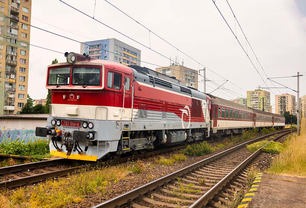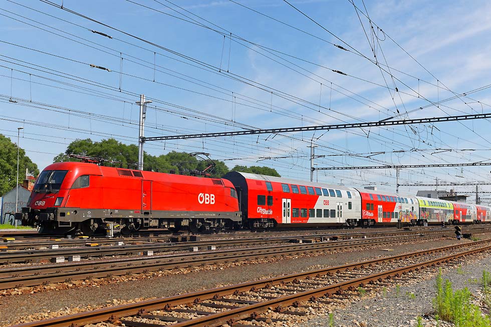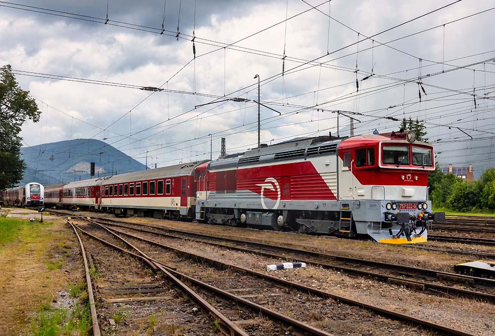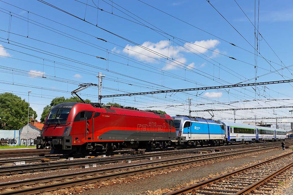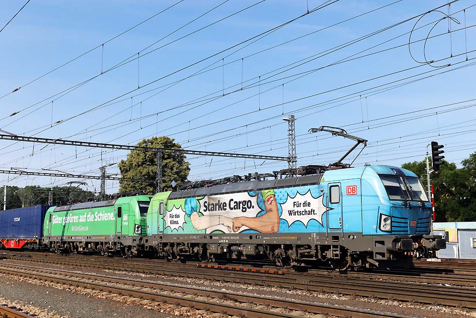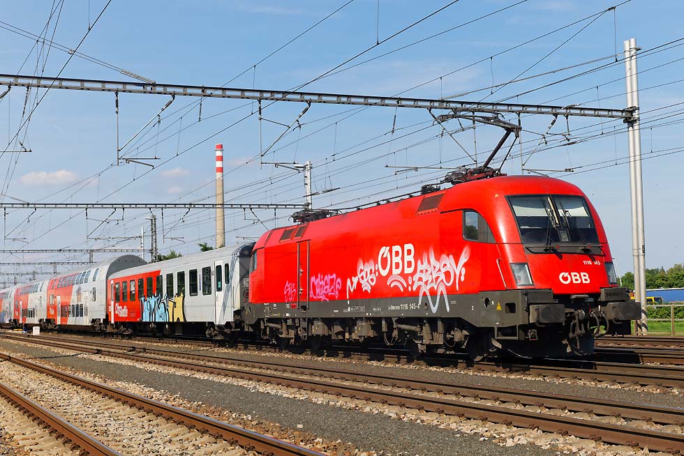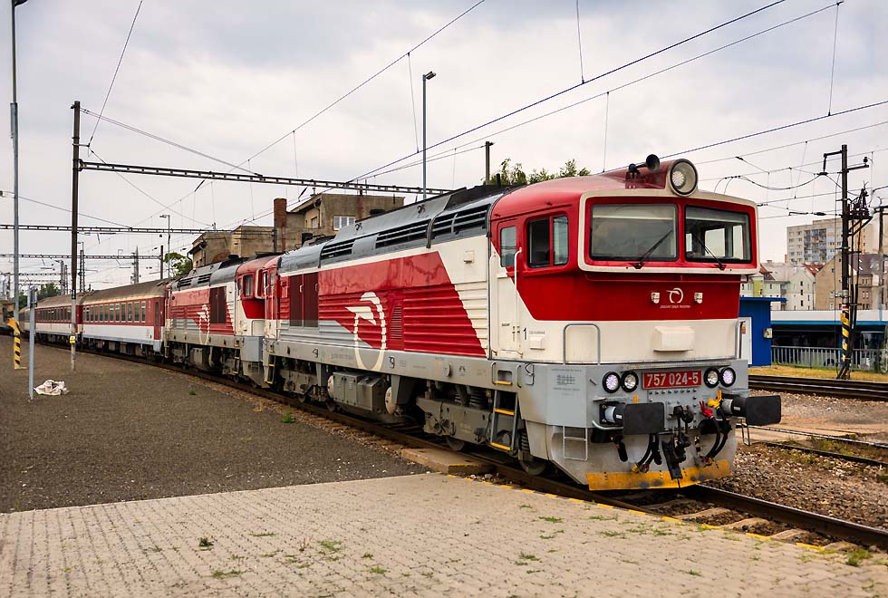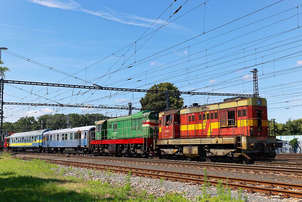 Von 15.-19.06.2024 war ich mal wieder in Breclav. Die Verkehre, vor allem Güterverkehr haben sich aus meiner Sicht stark verändert. An Altbauelloks waren fast ausschliesslich 230/240/742 zu beobachten. Habe nur eine 363 gesichtet, das war vor einem Jahr komplett anders. Vor den EC von/nach Budapest ausschliesslich neue (meist weisse) Vectrons. Stabil laufen die 1216 vor RJ und EC nach/von PL. Es gab aber einige Kuriositäten. Zum Monatsende ging es dann in die Slowakei und an den Balaton. ![]() Für mich überraschend war am Abend des 15.06.2024 kurz vor Gewitter die Rückfahrt vom Rendez in Bratislava 560 023+024, genannt Taxi. Das Rendez-Festival hatte ich nicht so auf dem Schirm. Die überaus attraktive Garnitur fuhr wohl nach Brno. ![]() 1216 238 mit ECPorta Moravica von Graz nach Przemysl. Die CD-Wagen sind nicht mehr dran, aber der SBB-Panoramawagen. Schöner Zug. Am 16.06.2024 bei der Einfahrt Breclav. ![]() Im Sommer gibt es Nostalgieverkehr an den Wochenenden von Breclav nach Lednice. Eigentlich fährt der Hurvinek selber, aber am 16.06.2024 gab es Vorspann von T435 040. Hier bei Postorna auf der Fahrt nach Breclav. ![]() 1116 187 ist nach Systemwechsel mit Leerautozug untauglich geworden, sodass die ET43-016 von PKPC die Garnitur bis zum Güterbahnhof Breclav schleppen musste. Wahrscheinlich war nur die auf die Schnelle verfügbar. 17.06.2024. ![]() Am Wochenende 16./17.06.2024 verkehrte auch der bunte 842 026 zwischen Breclav und Znojmo. Sie hatten zwar ein Bild im letzten LV, aber mit der grauen Front. Hier bei der Abfahrt ab Breclav am 17.06.2024. ![]() Am Wochenende 16./17.06.2024 verkehrte auch der bunte 842 026 zwischen Breclav und Znojmo. Sie hatten zwar ein Bild im letzten LV, aber mit der grauen Front. Hier bei der Abfahrt ab Breclav am 17.06.2024. ![]() Am Wochenende 16./17.06.2024 verkehrte auch der bunte 842 026 zwischen Breclav und Znojmo. Sie hatten zwar ein Bild im letzten LV, aber mit der grauen Front. Hier bei der Abfahrt ab Breclav am 17.06.2024. ![]() ET 43-21 von PKPC trägt Werbung für den Volkshelden Jozef Pilsudzki, der die Polen heldenhaft Verteidigt hat. Sie fährt hier Lz von Kuty nach Breclav, wo sie danach abgestellt war am 17.06.2024. ![]() 742 405+772 xxx und Überführung mit M250 0018 am Zugschluss aus Richtung Znojmo nach Breclav am 18.06.2024. ![]() 742 405+772 xxx und Überführung mit M250 0018 am Zugschluss aus Richtung Znojmo nach Breclav am 18.06.2024. ![]() 1216 230 mit 1216 90x und EC Polonia mit 3 Wagen nach Wien fährt aus Breclav aus am 18.06.2024. ![]() ET43-016 mit polnischen Ea-Wagen am 18.06.2024 von Breclav Richtung Kuty. ![]() 388 214 musste am 19.06.2024 vom RJ1031 weggenommen werden, aufgrund irgendwelcher Probleme. ![]() Dafür wurde für den RJ1031 die 193 439 von IDS vorgespannt, die den Zug nach Wien nach massiver Verspätung brachte. ![]() Dafür wurde für den RJ1031 die 193 439 von IDS vorgespannt, die den Zug nach Wien nach massiver Verspätung brachte. ![]() 230 029 , die für mich schönste in diesem alten Lack mit Patina. Mit Ea-Wagen von Kuty nach Breclav auf der Dyje/Drau-Brücke vor dem Bahnhof Breclav. ![]() 240 045 mit Getreidezug fährt am 15.06.2024 in Breclav ein. ![]() 230 045-einfach eine schöne Lok verlässt am 16.06. 2024 Breclav nach Kuty. ![]() 1116 145 mit Rex nach Wiener-Neustadt verlässt Breclav. Mit Flachwagen aufgrund Wagenmangel und völlig verunziert. Keine schönes Aushängeschild für die ÖBB. ![]() Starke Cargo im Tandem für DB-Czechia und KLV von Italien nach Breclav am 17.06.2024. ![]() 193 976 mit buntem Metropolitan von Budapest nach Prag am 17.06.2024. ![]() 230 003 fährt in Breclav ein am 18.06.2024. ![]() 240 107 mit Kesselzug fährt am 19.06.2024 in Breclav ein. ![]() 1116 181 mit Leerautozug in Breclav am 19.06.2024. ![]() 193 567 mit LTE 187 xxx am 19.06.2024 mit KLV verlässt Breclav Richtung Wien. ![]() 380 004 mit Metropolitan am 19.06.2024 verlässt Breclav Richtung Budapest. ![]() 1116 195 im NJ-Design mit Rex am 18.06.2024 nach Wiener-Neustadt verlässt Breclav. ![]() Die einzige 363, die ich mit Güterzug erwischte, war 363 020 mit einem Mischer nach Kuty am 18.06.2024. ![]() 1116 273 mit OS/Rex nach Wiener Neustadt verlässt Breclav. Selbst der eingereihte CAT-Dosto völlig verunziert. ![]() 1116 273 mit OS/Rex nach Wiener Neustadt verlässt Breclav. Selbst der eingereihte CAT-Dosto völlig verunziert. ![]() 240 053 mit Stahlzug fährt Breclav ein am 18.06.2024. ![]() 193 928 CER mit Stahlzug bei Lanzhot Richtung Breclav am 18.06.2024. ![]() 230 070 mit Mischer am 18.06.2024 Lanzhot Richtung Breclav. ![]() 193 573 mit EC Bathory nach Budapest bei Lanzhot am 18.06.2024. ![]() 193 578 mit Metropolitan nach Budapest verlässt am 18.06.2024 Breclav. ![]() 757 022 mit Schnellzug von Vrutky nach Zvolen am 28.06.2024 bei der Abfahrt Vrutky. ![]() 131 056 am 28.06.2024 in Vrutky. ![]() 757 003 mit Nachtzug am Morgen des 30.06.2024 in Košice. ![]() Am 30.06.2024 fuhr ich nach Trebišov und wollte nach einer Fotostelle für die Breitspurstrecke von Cierna nad Tisou nach Haniska Ausschau halten. Ging nicht, weil das eine Breitspurgleis in allen Unterwegsbahnhöfen mit Zäunen abgetrennt ist und die Strecke stark bewachsen ist, sodass es keine freien Stellen zum Knipsen gibt. Dazu war es Sonntag und ich rechnete nicht mit Güterverkehr. Daher war ich in Trebišov sehr überrascht, einen der Erzzüge zu erwischen. Ist schon gewaltig, 2 Doppelloks vorn und als Nachschub vor einem endlos langen Zug. Hier bei der Durchfahrt Trebišov am 30.06.2024. Diese Wagen sind ausschliesslich im Zugverband. ![]() 163 109 mit Os nach Cierna nad Tisou durch Michalany am 30.06.2024. ![]() 131 032 mit Kohlezug von Cierna nad Tisou durch Michalany am 30.06.2024. ![]() 363 099 mit Leerkohle nach Cierna nad Tisou neben Schiebelok 131 054 in Michalany am 30.06.2024. ![]() Doppeleinheit 660 nach Cierna nad Tisou in Košice-Predmestie am 30.06.2024. ![]() Und 757 014 mit Schnellzug von Košice nach Zvol