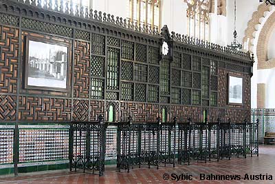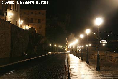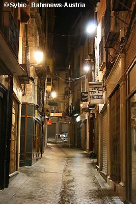 Im Grunde genommen begann alles vor einigen Monaten, als ich vom Chefredakteur der spanischen Zeitschrift TrenMania (siehe http://www.trenmania.com ), Enrique Dopiquo, eine Anfrage zur Verwendung einer von mir auf dem European Railway Server ( siehe http://www.railfaneurope.net ) präsentierten Belegaufnahme der ÖBB Reihe 1216 erhalten habe. Mit dem Entreffen des zugesagten Belegexemplars der TrenMania Ausgabe entwickelte sich über den Lauf der Monate hinweg ein herzlicher Kontakt zum spanischen Kollegen wodurch auch Interesse am spanischen Bahnalltag geweckt wurde, ungeachtet der restriktiven Sicherheitsmassnahmen der Spanischen Staatsbahnen RENFE welche zum Fotografieren in Bahnhöfen bzw. an Bahnanlagen das Besitzen einer kostenlos erhältlichen Berechtigungskarte voraussetzt! Als im Mai durch die österreichische Fluglinie Austrian Airlines günstige Reisemöglichkeiten angeboten wurden, war es endgültig soweit: Das Bahngeschehen um die spanische Hauptstadt Madrid sowie die ebenso interessante Metropole Barcelona sollte im Rahmen eines einwöchigen Aufenthaltes dokumentiert werden. Mit der Unterstützung des spanischen Kollegen wurde die zuvor erwähnte Berechtigungskarte gelöst und nach einigen Vorbereitungen (Abklärung von Reiserouten und Fotoplätzen) wurde am Vormittag des 30.September 2007 eine keinesfalls uninteressant werdende Woche angetreten. Pünktlichst am Flughafen Barcelona angekommen wurde die verbleibende Wartezeit auf den Weiterflug nach Madrid mit der Fahrt zum Bahnhof Sants verbracht, wo aufgrund des teilweise komplizierten Verkaufsystems der RENFE die Fahrkarte von Madrid nach Toledo (wo sich mein Quartier befand) erworben wurde zumal sich der einfache Fahrkartenschalter am Flughafen Barcelona dafür nicht im Stande sah; Südeuropa ist eben anders! Entlang der Schnellbahn (in Spanien "Cercanias" genannt) zwischen dem Flughafen und dem Bahnhof Sants verkehrten an diesem Tag jene 2004 durch den französischen Hersteller Alstom gelieferten vierteiligen Elektrotriebwagen der Reihe 464. Diese 2200 kW (!) starken und bis zu 160 km/h schnellen Fahrzeuge sind für das traditionell mit 3kV = elektrifizierte Breitspurnetz der RENFE geeignet, lediglich das spanische Hochgeschwindigkeitsnetz AVE basiert bekanntlich auf mit 25kV ~ elektrifizierten Normalspurstrecken. ![]() ![]() ![]() ![]() Im Flugzeug nach Madrid folgte eine böse Überraschung in Form des vorläufigen Verweigerns der Starterlaubnis aus nicht näher bekannten Gründen. Die Verwendung des Zuges wäre vielleicht doch besser gewesen allerdings standen die zu entrichtenden Billetpreise und die anfallende Reisezeit in keinem Verhältnis zu den konkurrenzlosen Angeboten der Flugunternehmen. So wurde der ursprünglich angedachte Zug nach Toledo versäumt und eine weitere zweistündige Wartezeit am Madrider Bahnhof Puerta Attocha unvermeidlich. Zwischen der spanischen Hauptstadt und Toledo wurde durch die RENFE mit grosszügiger Förderung der Europäischen Union eine regionale Hochgeschwindkeitsstrecke eingerichtet weshalb für die ca. 70km Entfernung eine 30 minütige Reisezeit anfällt. Dafür wurde sogar der altehrwürdige Bahnhof Toledo umgebaut weshalb an der genanten Örtlichkeit ausser den aktuell eingesetzten vierteiligen Elektrotriebwagen der Reihe 104 aus der Pendolino Fahrzeugfamilie kein anderes Triebfahrzeug anzutreffen ist. Nach dem Erreichen des Endzieles mit rund zwei Stunden Verspätung wurde das Erholen dringend notwendig um für den am frühen Morgen beginnenden Folgetag bestens gerüstet zu sein. Anbei findet Ihr die Belegaufnahmen des ersten Tages, man beachte dabei die Halle des Bahnhof Attocha welche im ersten Moment eher an ein Palmenhaus erinnert! ![]() ![]() Tag 2 - 01.10.2007 ![]() ![]() Zwischen der spanischen Hauptstadt Madrid und der am Mittelmeer gelegenen Stadt Valencia existiert eine Bahnverbindung welche ab dem Bahnhof Aranjuez entlang einer nicht elektrifizierten Nebenbahn über Cuenca verläuft und im Personenverkehr mit dreiteiligen Dieseltriebwagen der Reihe 592 bedient wird. Bei diesen rund 600 kW starken und 140 km/h schnellen Fahrzeugen handelt es sich um MAN Lizenznachbauten welche durch die RENFE modernisiert werden um damit eine Verlängerung der Fahrzeuglebenszeit zu erreichen. Der Güterverkehr ist aüsserst spärlich bis nahezu gar nicht vorhanden, weshalb der Anblick von Güterwagen eine Rarität darstellt. Aufgrund der aktuellen Errichtung einer zweigleisigen elektrifizierten Hochgeschwindigkeitsstrecke nach Valencia sind die Tage dieser überaus idyllischen Nebenbahn bereits gezählt. Ein Umstand welcher anhand des Verfalls der Bahnanlagen nicht von der Hand zu weisen ist nachdem vorhandene Ausweichen entfernt und die laufenden Erhaltungsmaßnahmen auf ein Mindestmass beschränkt worden sind. ![]() ![]() ![]() ![]() ![]() ![]() ![]() ![]() ![]() ![]() ![]() ![]() Aufgrund der Möglichkeit von Führerstandsmitfahrten ergaben sich zahlreiche Belegaufnahmen zwischen Aranjuez und Cuenca, beachtenswert sind dabei die zahlreichen Flügel- sowie deren Vorsignale. Letztere werden über die vorhandenen Seilzüge vertikal (!) gedreht und zeigen dem Triebfahrzeugführer freie Hauptsignale durch eine grüne Scheibe, Halt zeigende Hauptsignale mit einer gewöhnlichen Warnscheibe an. Das gut besuchte Gasthaus am Bahnhof Cuenca bietet durchwegs günstige Verpflegungsmöglichkeiten an, lediglich der Umstand wonach durch die Kellner (sofern nicht anders gewünscht) spanischer Rotwein als Standardgetränk serviert wird erscheint im ersten Moment eigenartig. Nach der Ankunft in Aranjuez wurde zum Ausklang des zweiten Tages der ehemalige Bahnhof Las Infantas sowie eine nächst dem Depot La Sagra befindliche Fotostelle aufgesucht, prompt wurden wir dort durch zwei auf Streifenfahrt befindliche Polizisten der als spanischen Bundespolizei bekannten "Guardia Civil" kontrolliert. An sich nicht Aussergewöhnliches zumal sich die Guardia Civil aufgrund der bisherigen Terroranschläge auch 