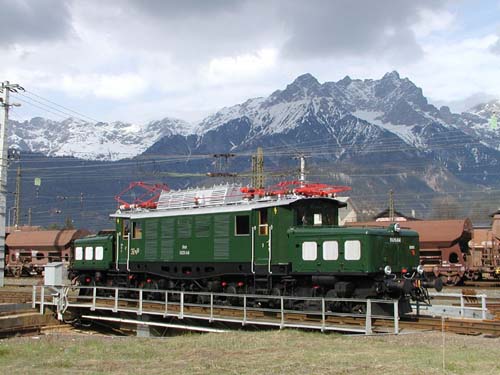 In Innsbruck wird nun die Komplettierung der Inneneinrichtung durchgeführt. Somit steht der “Erlebnisbahn” ein weiteres neues “altes” TFZ zur Verfügung , welches vor allem im Westen Österreichs hoffentlich noch viele Jahre im Einsatz stehen wird. Foto: Lok bei der Präsentation am 19. April 2002 in Saalfelden | ![]() |