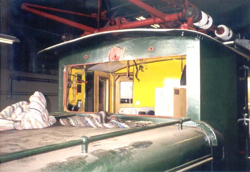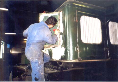 24.Nov.2001: 2 Maschinenraumfenster - Alurahmen gereinigt div. Löcher für Scheinwerferkabel gebohrt Lichtsteckdosen-Halter montiert Lack aufgeschliffen (Lokkasten) | |