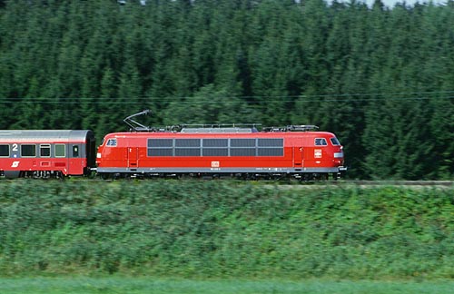 Wenige Tage später, am 13. August 2000, zog das verkehrsrote Einzelstück den EC 65 Mozart (Paris - Wien) von Stuttgart nach München. Bei Hochdorf war Stefan Gigl zur Stelle. (Foto: Stefan Gigl)