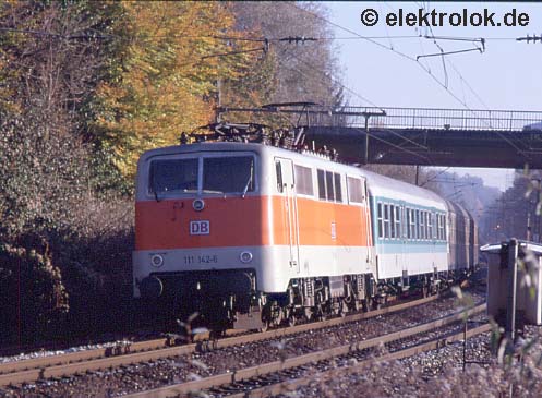 Am 30. Oktober 1997 bespannte die 111 142 den RE 3510 von Salzburg nach München.
