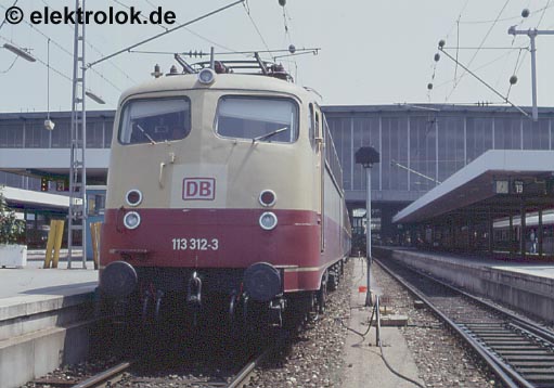 Die verbleibenden elf Lokomotiven der Baureihe 112 wurden zum 1.1.1991 in die Baureihe 113 umgezeichnet. Ende 1991 wurde die Höchstgeschwindigkeit auf 120 km/h beschrenkt und die Lokomotiven von Hamburg nach München abgegeben. Trotzdem konnte man die Loks hin und wieder im hochwertigen Reisezugdienst antreffen. Eine fehlerhafte 103.1 führte am 28. Juni 1994 zum einsatz der 113 312 vor dem IC Therese Ghiese nach Berlin. (München Hbf, Foto: HS, 28.06.1994)