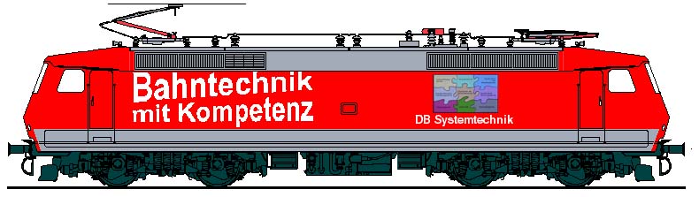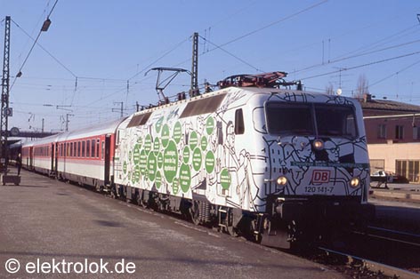 Die beiden Systemtechnik-Lokomotiven 120 501 und 502 wurden im Jahr 2005 mit einer auffälligen Werbung für die DB Systemtechnik beklebt.