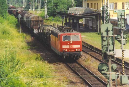 Auch im grenznahen Güterverkehr kann man die Loks immer noch regelmäßig antreffen. So auch die verkehrsrote 181 212 die am 2. August 2001 mit dem Güterzug 44520 nach Pel unterwegs ist. Die Lok war im Januar 1999 die erste 181.2, die das AW Opladen in einem verkehrsroten Anstrich verließ.