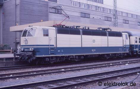 Bis Mitte der Neunziger wurden die 181er auch oft im Regionalverkehr von Saarbrücken nach Trier udn Koblenz eingesetzt. So auch 181 215 die hier mit einem Eilzug im Bahnhof Völklingen gerade einen Stopp einlegt. Die Zuteilung zum GB Fernverkehr macht solche Bilder - nicht nur wegen der Farbgebung - heute nur mehr selten möglich.