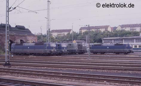 Noch im Jahr 1988 hatten alle Lokomotiven ihre Ursprungslackierung. Trotzdem war dieses Treffen am 20. August 1988 vor dem alten Lokschuppen im Bahnhof Saarbrücken schon damals eine Rarität. Gleich fünf Lokomotiven in alter Farbgebung gaben sich ein Stelldichein: 181 205, 181 207, 150 192, 141 085 und 181 210. Wenige Jahre später war diese Bild nicht mehr möglich. Nicht nur, dass einige Loks mittlerweile umlackiert wurden, auch die alte Lokhalle ist mittlerweile nicht mehr vorhanden.