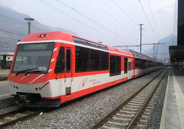 Der ABDeh 4/10 2012 und 2022 der MGB waren beide in Doppeltraktion als Zug 237 Visp-Zermatt unterwegs (Aufnahme 17.03.12 Visp)