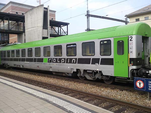 Bcm 61 85 59-00 118-4 CH-RALP als Begleitwagen für die LKW Fahrer am Rola 43619 Freiburg Brsg-Novara in Spiez (Aufnahme 17.03.12 Spiez)