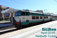 Eine Rangierlok ziegt eine E464 samt Zug in Catania, 31.4.2015