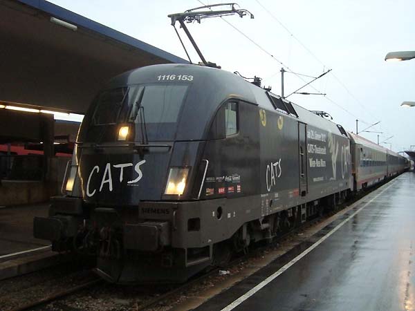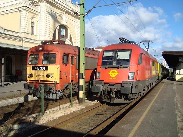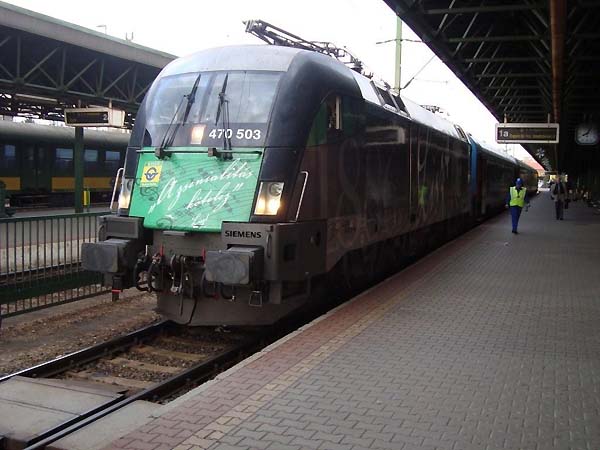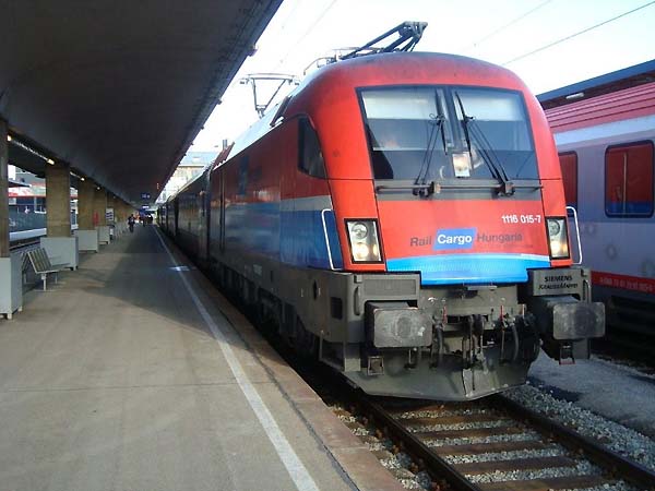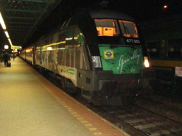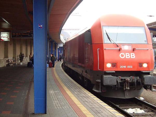 Ein Vorgeschmack auf "GySev" im Wiener Süd-Ost-Bf. 1116 061 am 22.02.12 Bratislava hl.st ("Hauptbahnhof") . Coca-Cola hat auch hier die E-Loks erreicht. (23.2.12) . Bahnhofsrestaurant oben im Hbf Bratislava mit etlichen, interessanten Bahnexponaten, u.a. dieser Streckenkarte der Slowakei. 240 051 und 263 008 am 23.02.12 in Bratislava hl.st 240 096 am 23.02.12 in Bratislava hl.st Containerzug mit 230 069 durchfährt Bratislava hl.st. 362 001 am 23.02.12 in Bratislava hl.st ÖBB - Gast aus Wien - Südost : 2016 003 (Heimat: Wr.-Neustadt) am 23.02.12 in Bratislava hl.st zurück in Wien (Süd -Ost): 4124 001 So kann man sich auch in Wien-(Hernals) bewegen..... Nun nach Ungarn (Szombathely) : 1116 063 (24.2.12) Die Raaberbahn (benannt nach dem Fluß) ist überall präsent 480 006 mit IC nach Budapest-Keleti in Sopron 470 503 (ex 1047 503), Sopron ohne Worte Übergabe des EC aus Zagreb nach Wien - Meidling (Sopron) morgens geht`s zurück nach Kroatien (Zagreb -Gl.) (25.2.12) GySEV 470 und 1116 in Szombathely 1116 060 und 418 301 am 25.2.2012 in Szombathely BW Linz ( 1016 011 und 541) 182 581 in Linz (26.2.12) Er 20-003 in Linz (26.2.12) 183 714 und 1144 040 in Linz (26.2.12) 1116 015, Wien -West (27.2.12) 1116 153 (28.2.12, Wien -West) Abschluß -Dessert im Bahnhofs-Bistro Bratislava hl.st